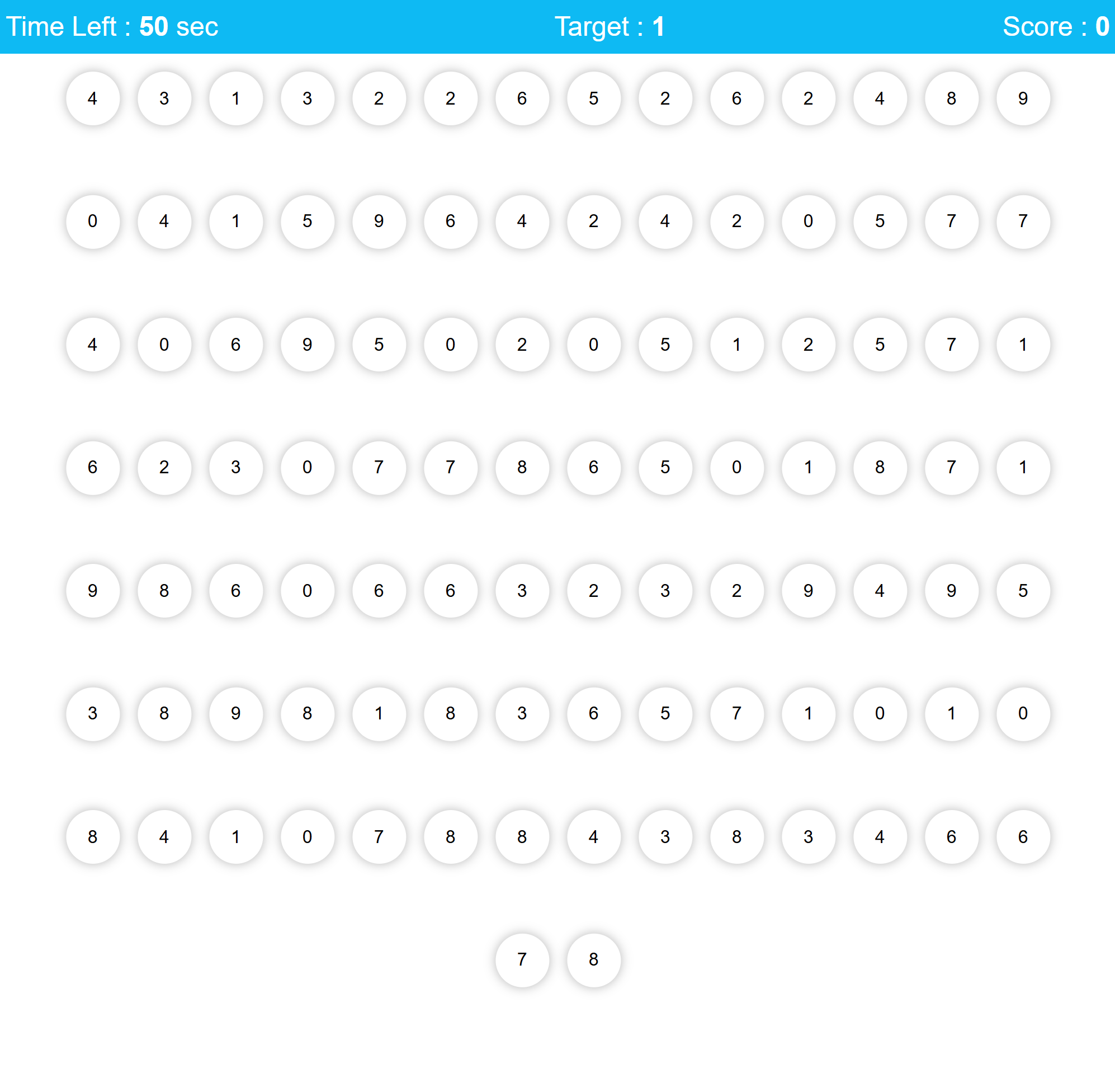 The goal is to click on the bubbles matching the target number within a limited time frame, earning points with each correct hit. This project demonstrates my front-end development skills, including dynamic UI updates, responsive design, and engaging gameplay mechanics
